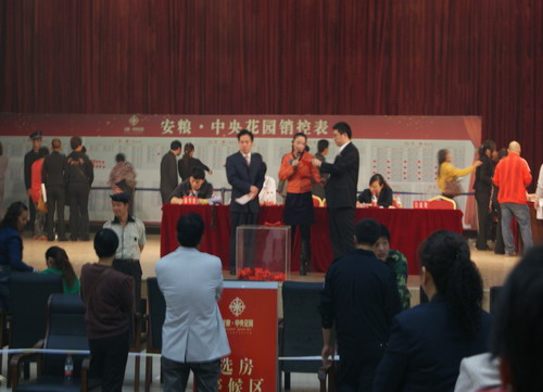 2010年10月11日上午七時,安糧·中央花園在蕭縣鳳山國際大酒店大禮堂舉行了二次推盤活動。作為9月25日開盤的延續(xù),公司為本次開盤活動前期做了大量的研究和準備工作,并得到了地產(chǎn)公司領(lǐng)導的重視和關(guān)注。本次共推382套房源,從開盤當日情況來看,現(xiàn)場秩序井然,客戶選房熱情高漲,當日完成大定135套,與9月25日的136套結(jié)合,已完成銷售271套,去化率達70.9%。直至活動結(jié)束后,趕到現(xiàn)場選房的客戶仍然絡(luò)繹不絕。
