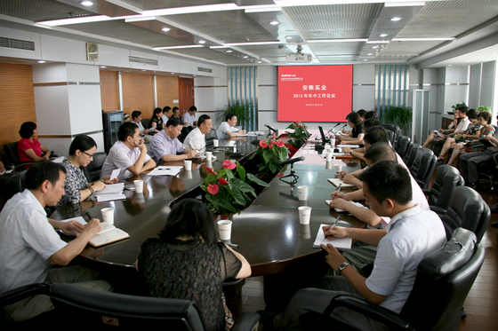 7月29日-30日,安糧實業(yè)2013年年中工作會議在盛安廣場18樓會議室舉行。安糧實業(yè)經(jīng)理室成員、各部室及各子公司負(fù)責(zé)人參加了會議,安糧控股副總裁葛志毅、曹訓(xùn)立等領(lǐng)導(dǎo)應(yīng)邀出席。