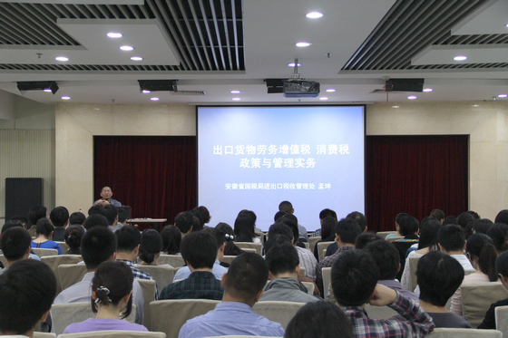 9月27日上午,公司在五樓多功能廳舉辦了出口退稅知識專題講座。本次講座邀請安徽省國家稅務局進出口處孟坤副處長主講,公司系統內出口業務部門及財務部門共計90多人參加講座。