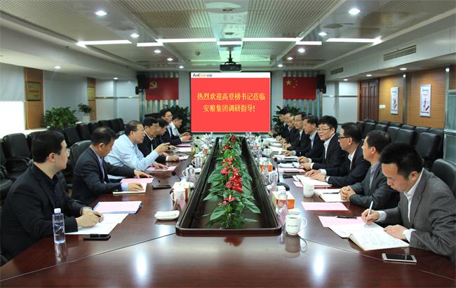 2019年5月9日,海螺集團黨委書記、董事長高登榜在國貿集團黨委書記、董事長范陽陪同下,來公司調研指導,同行的還有海螺集團黨委委員、紀委書記吳小明,副總經濟師、董辦主任周小川,組織人事部部長汪純健等。安糧集團黨委書記、董事長曹訓立率集團(控股)領導班子全體成員參加調研座談。