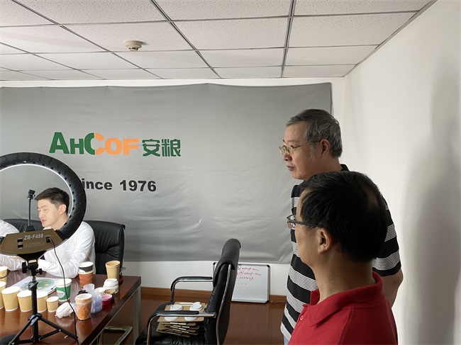 6月18日,127屆線上廣交會進入第四天,公司各直播場次正有條不紊、如火如荼地進行中。當天下午,安糧直播間迎來重量級探班嘉賓--國貿集團黨委副書記、總經理包祥華。