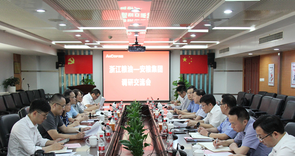 7月31日上午,浙江糧油董事長袁承海帶隊來到安糧調研交流,公司黨委書記、董事長曹訓立,黨委副書記、總裁方宗友及部分集團控股領導班子成員熱情接待了袁承海董事長一行,并舉行交流座談會。