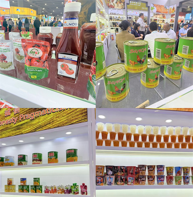 在食品展區,安糧帶來了多款精心研發的新品,其中番茄醬系列產品吸引了眾多前來咨詢的客戶眼光。本次特別推出的直立袋和擠壓瓶等新型包裝番茄醬不僅方便快速使用,同時滿足了不同種類客戶的使用需求。此外,蜂蜜、午餐肉罐頭、水果罐頭、調味品等食品也憑借其獨特的口味和品質吸引了眾多采購商的目光。