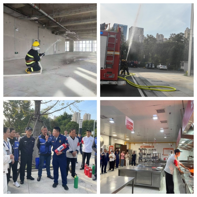 下午3時,消防應(yīng)急演練總指揮下達演練開始指令。工作人員在預(yù)定地點放置煙霧彈,觸發(fā)火災(zāi)報警,模擬火情發(fā)生場景。安糧中心辦公樓火警警報鳴響,全體職工迅速進入緊急疏散狀態(tài),各樓層消防和應(yīng)急救援隊員迅速反應(yīng),有序引導(dǎo)職工從安全出口撤離到避難層。同時,消防隊員全副武裝,封控火場、撲滅火災(zāi)。在火警解除后,救援大隊隊員開展滅火器使用教學(xué)、油鍋起火的預(yù)防和撲救等內(nèi)容,參與演習的物業(yè)、餐飲安全員們分別用不同的方式進行滅火實操,切身感受了正解與錯誤滅火的后果。