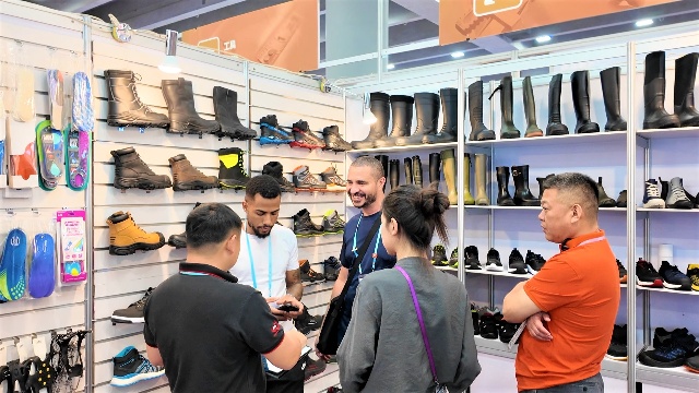 小家電區域里,安糧的電風扇憑借智能控溫、多檔風速調節等功能有效兼顧了節能與舒適體驗,多樣化的外觀也能輕松適配各種家居風格。鞋類品展區的勞保工具鞋憑借耐磨防滑、支撐性好的優點吸引了建筑、物流等行業客戶的咨詢。